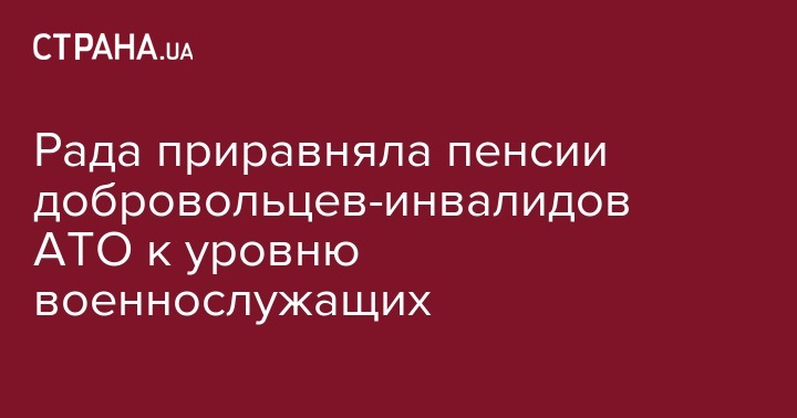 Сегодня, 18 октября, Верховная Рада приняла законопроект, который приравнял пенсии по инвалидности добровольцев АТО до уровня военнослужащих. За соответствующий законопроект № 2345 проголосовало 264 народных депутата. Об этом сообщает аккаунт ВР в Twitter.