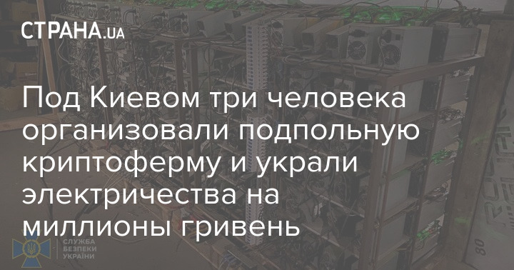 Три жителя Киевской области создали подпольную криптоферму и подключились к электроподстанции в обход счетчика. Таким образом мошенники нанесли государству ущерб в размере 3,5 млн грн.