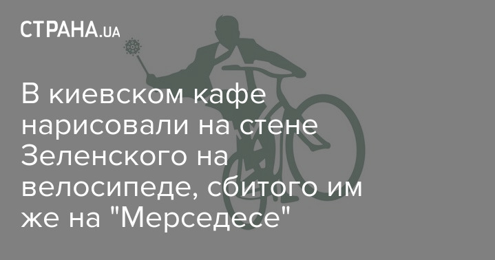 В киевском кафе нарисовали на стене Зеленского на велосипеде, сбитого им же на "Мерседесе"