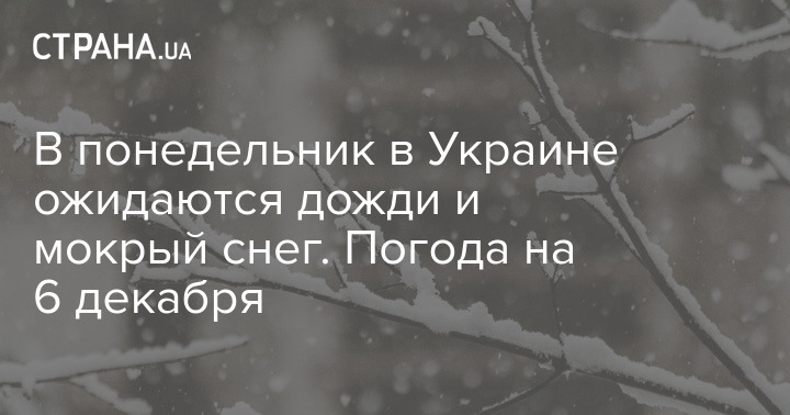 В понедельник в Украине ожидаются дожди и мокрый снег. Погода на 6 декабря