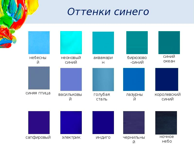 Начнем с цвета. Это, конечно же синий и все его оттенки - начиная с практически белого (цвет морской пены) до черного (цвет ночной водной глади):