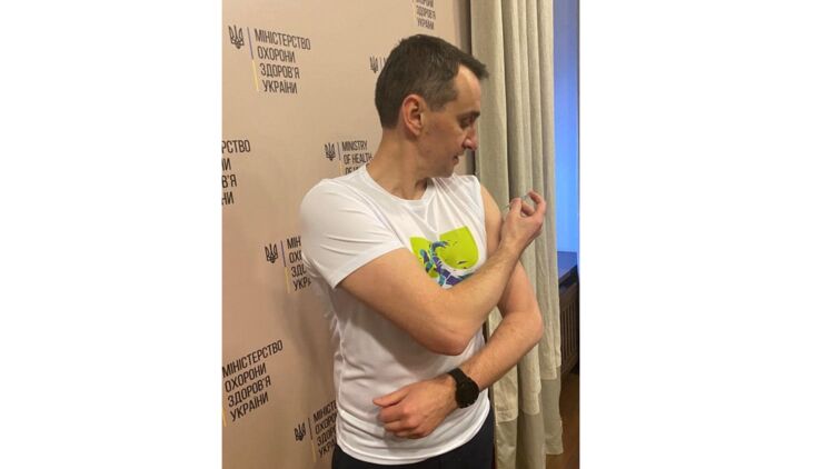 Виктор Ляшко опубликовал фотографию процесса вакцинации. На снимке министр здравоохранения сам себе делает укол в плечо.