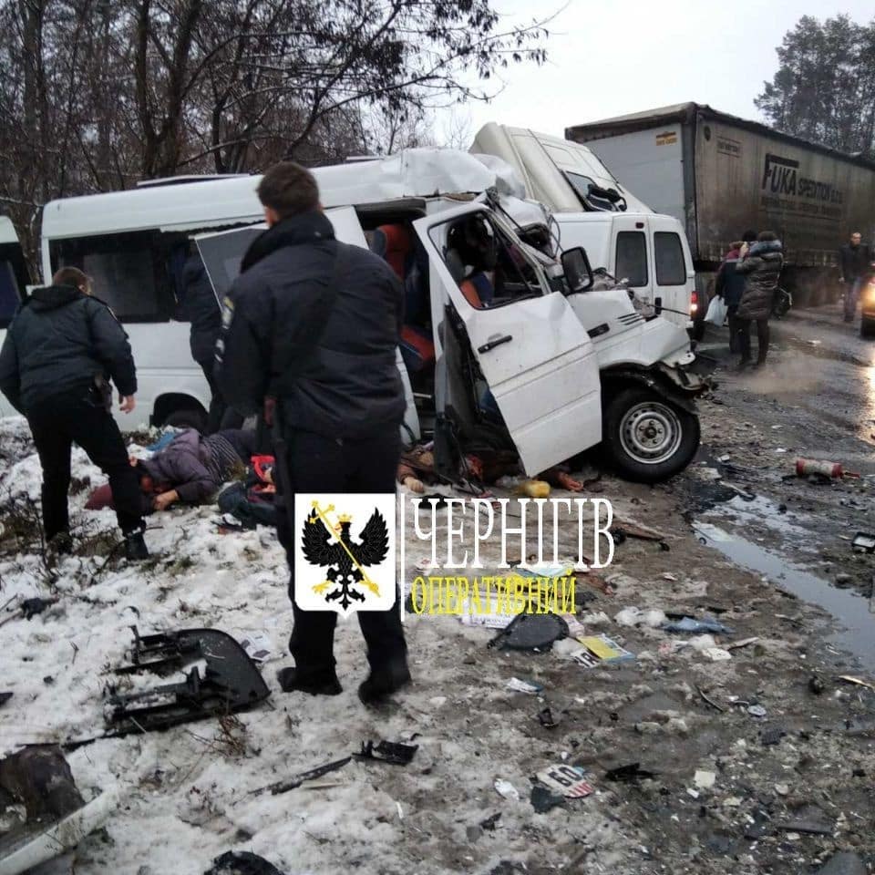 Сегодня, 7 декабря, около 7:55 на трассе Н-27 Чернигов-Гремяч возле села Брусилов Черниговской области пассажирская маршрутка столкнулась с грузовиком. Сообщается, что в результате ДТП погибли 13 человек, 6 получили травмы.