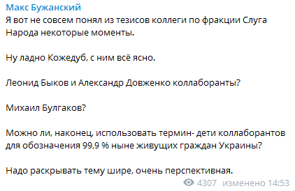 В соцсетях такие бредовые заявления нардепа тут же раскритиковали. Его не поняли даже коллеги по фракции. Так, Максим Бужанский иронизирует: