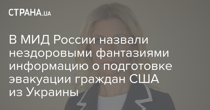 Официальный представитель российского МИД Мария Захарова прокомментировала информацию о подготовке эвакуации из Украины американцев из-за возможного вторжения РФ. Она назвала ожидания российской агрессии нездоровыми фантазиями.