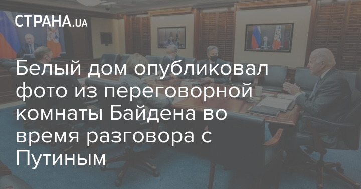 Белый дом опубликовал фотографию из кабинета президента Джо Байдена во время переговоров 7 декабря с президентом Российской Федерации Владимиром Путиным, которые продолжались два часа.