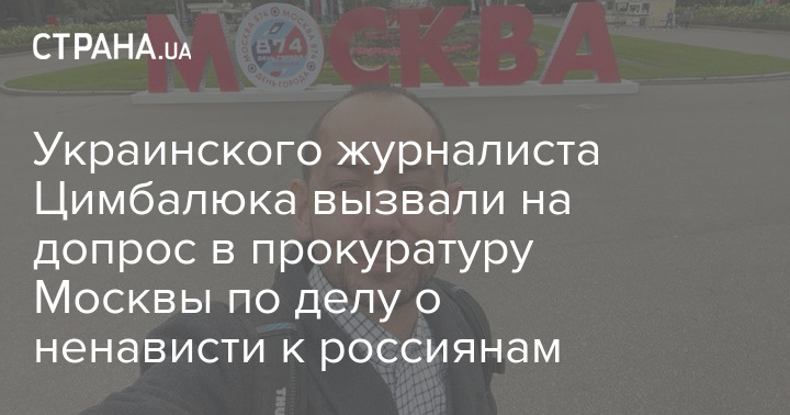 Украинского журналиста, корреспондента УНИАН Романа Цимбалюка вызвали на допрос в прокуратуру Москвы по делу о возбуждении вражды и ненависти к русскому народу.