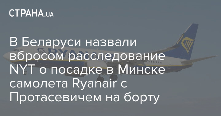 В Беларуси назвали информационным вбросом расследование New York Times о посадке самолета Ryanair в Минске, в результате которой был задержан белорусский оппозиционер Роман Протасевич.