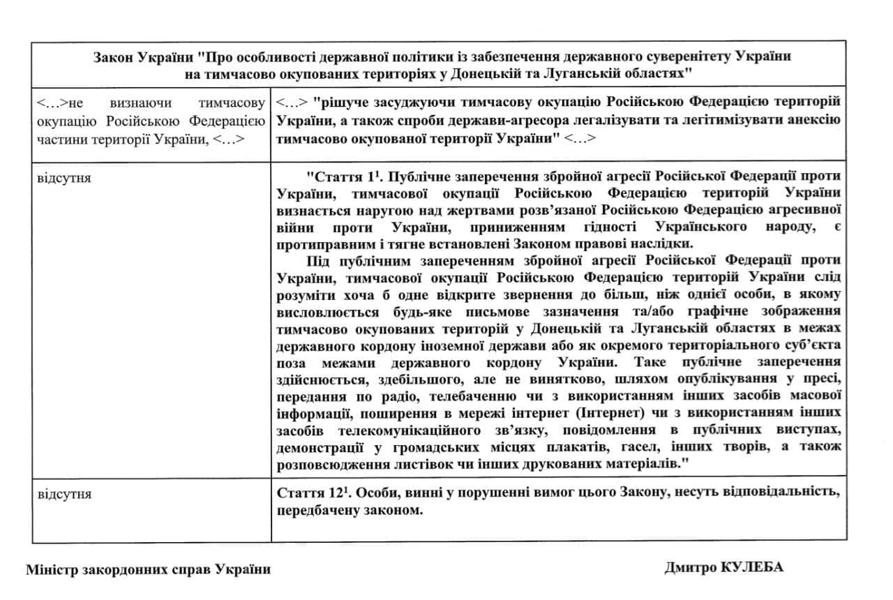 Под публичным возражением понимается "хотя бы одно открытое обращение к более чем одному лицу, в котором выражается любое письменное или графическое изображение Крыма или Донбасса российскими или как отдельного территориального субъекта, или отрицание попыток РФ легализовать и легитимизировать аннексию Крыма".