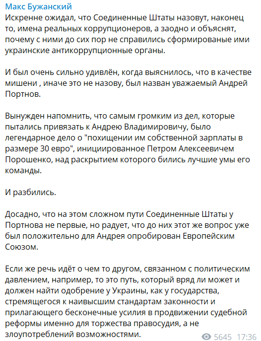 Нардеп Макс Бужанский удивляется, почему США нашли в Украине только двух "коррупционеров".