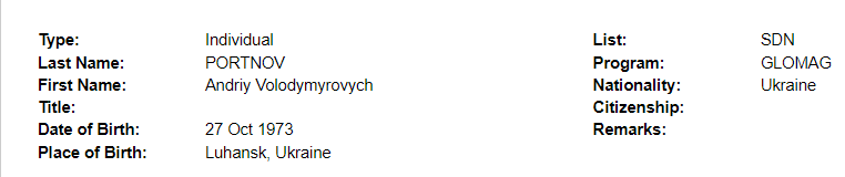 На сайте Управления по контролю за иностранными активами (OFAC) говорится, что Портнов попал в список Specially Designated Nationals (SDN). Его фигурантам блокируются активы на территории США.