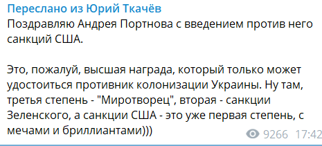 "Поздравляю Андрея Портнова с введением против него санкций США.