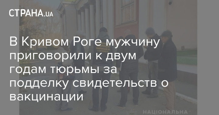 За подделку международного свидетельства о вакцинации 42-летнего жителя Кривого Рога приговорили к двум годам лишения свободы.
