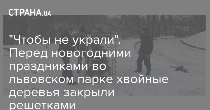 Во львовском парке елки оградили решетками от браконьеров. Источник: YouTube