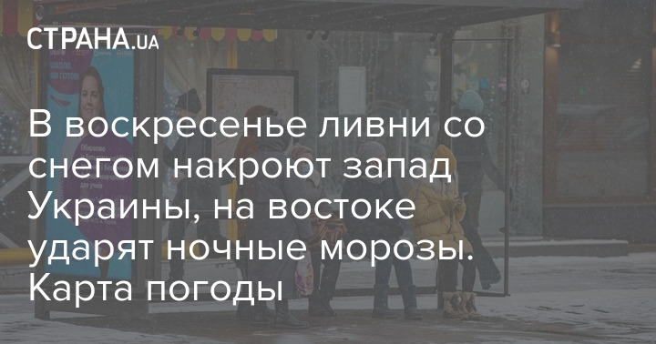 В воскресенье ливни со снегом накроют запад Украины, на востоке ударят ночные морозы. Карта погоды