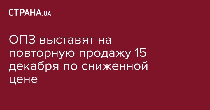 ОПЗ выставят на повторную продажу 15 декабря по сниженной цене