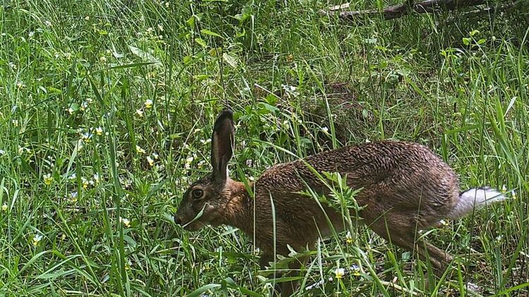 Русак спешит по делам по лугу. Фото: facebook.com/zapovidnyk2018
