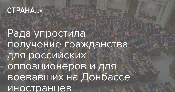 Верховная Рада Украины приняла закон об изменениях ЗУ "О гражданстве Украины" (законопроект №5630), которым предусмотрено упрощение приобретение украинского гражданства иностранцами и лицами без гражданства, участвовавшими в конфликте на Донбассе на стороне Киева. "За" проголосовали 285 нардепов.
