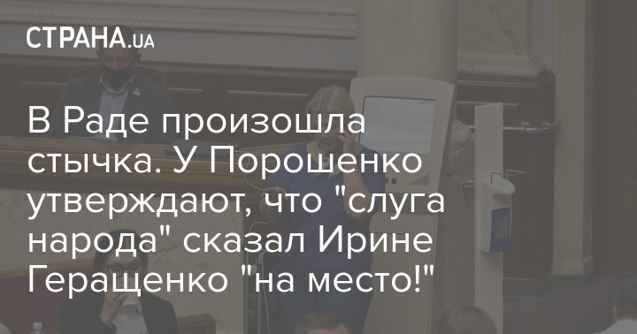 Народный депутат от фракции "Европейская Солидарность" Алексей Гончаренко сообщил, что его коллегу по политсиле Ирину Геращенко оскорбил "слуга народа" Александр Ковальчук, сказав ей фразу "на место!" После этого началась стычка в президиуме парламента.