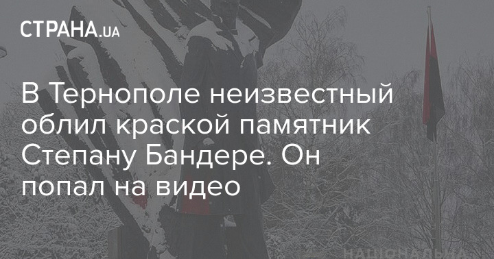 В Тернополе неизвестный облил краской памятник Степану Бандере. Он попал на видео
