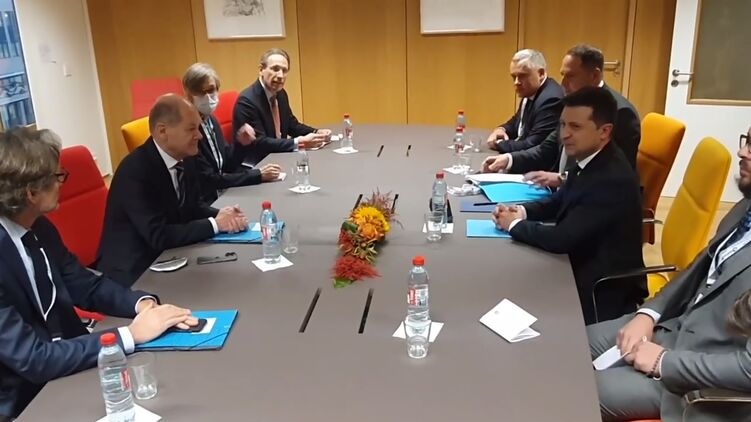 Зеленский впервые встретился с канцлером Германии Шольцем. Они начали обсуждать Минские соглашения. Видео
