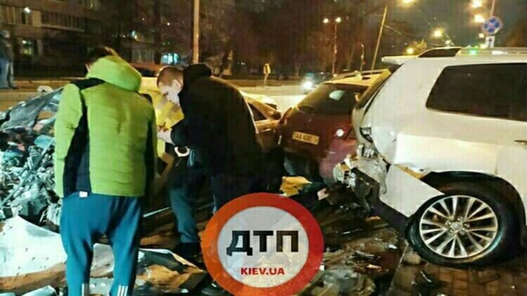 В столице легковое авто столкнулось с 15 припаркованными у дороги автомобилями. Фото: dtp.kiev.ua