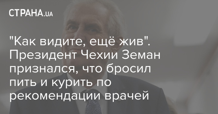 Президент Чехии Милош Земан заявил, что по рекомендации врачей уже месяц не курит и не употребляет алкоголь.