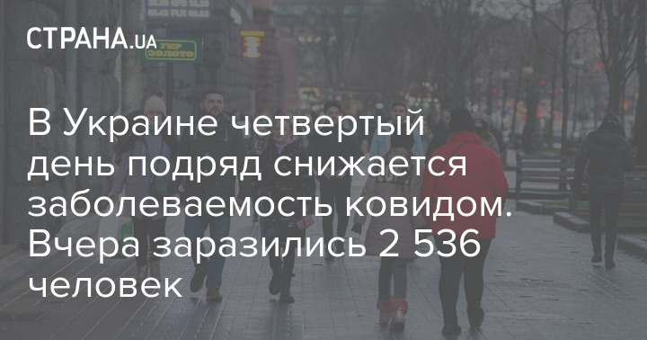 В Украине снижается заболеваемость ковидом. За прошлые сутки коронавирус выявили у 2 536 человек. Таким образом, спад числа новых случаев болезни фиксируют четвертый день подряд.