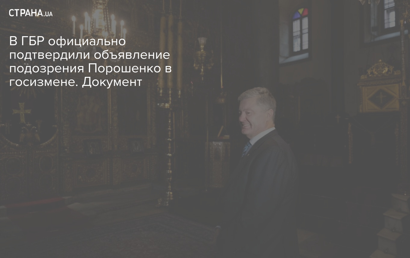 Госбюро расследований (ГБР) официально подтвердило, что Петру Порошенко объявлено подозрение в госизмене и содействию террористическим организациям по делу по поставкам угля с неподконтрольных районов Донбасса.