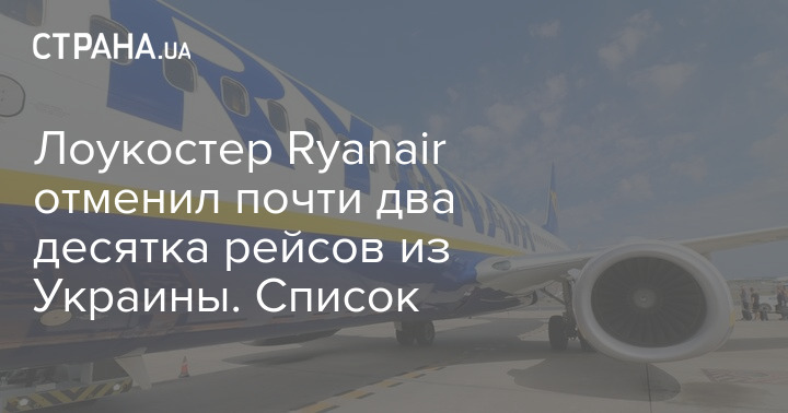 Лоукостер Ryanair отменил почти два десятка рейсов из Украины. Список