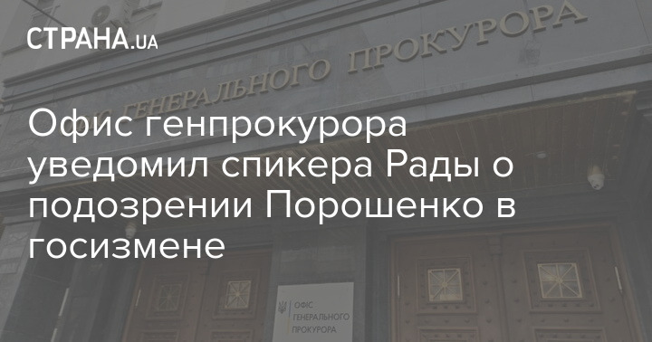 И.о. генерального прокурора Алексей Симоненко направил спикеру Верховной Рады Руслану Стефанчуку официальное уведомление о подозрении в госизмене и содействии терроризму, выдвинутом Петру Порошенко.