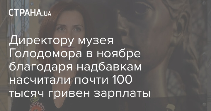 Директору национального музея Голодомора Олесе Стасюк в ноябре насчитали почти 100 тысяч гривен заработной платы. При этом ее должностной оклад составил 38 876 гривен, остальная сумма набралась благодаря надбавкам, в частности за выполнение особо важной работы.
