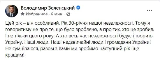 Напомним, ровно год назад поздравление президента Зеленского записывали в четырех локациях: на Банковой, в Мариинском парке, на Михайловской площади и возле Софийского собора. Тогда Зе поздравил украинцев на несколько часов раньше, чем нужно, - его поздравление в полном объеме слили в Сеть.