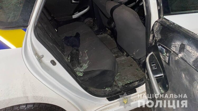 Мужчина повредил полицейский автомобиль. Фото: facebook.com/police.in.Rivne.region