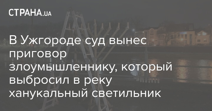 В Ужгороде осудили местного жителя, который в начале декабря выбросил в реку Уж светильник, установленный к еврейскому празднику Ханука. Злоумышленнику назначили 1 год лишения свободы с освобождением на 1 год испытательного срока. Такое решение вынес Ужгородский горрайонный суд Закарпатской области.