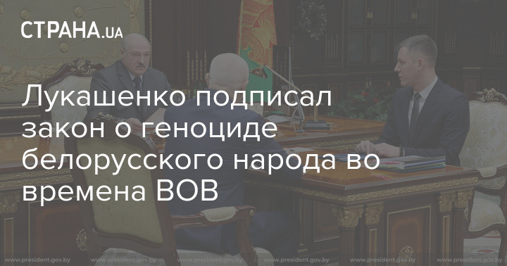 Президент Республики Беларусь Александр Лукашенко подписал закон "О геноциде белорусского народа", касающийся преступлений нацистов времен Великой Отечественной войны (второй мировой войны - Ред.) и сразу после нее.