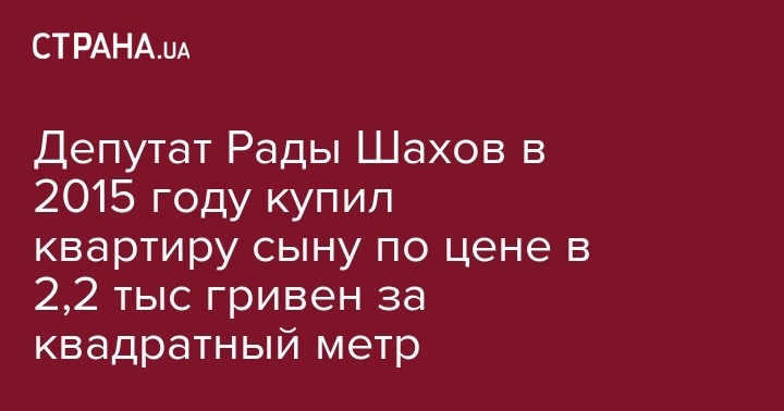 Депутат Рады Шахов в 2015 году купил квартиру сыну по цене в 2,2 тыс гривен за квадратный метр