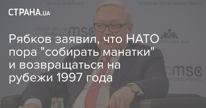 Заместитель министра иностранных дел России Сергей Рябков, который прибыл в Женеву на переговоры России и США по гарантиям безопасности, заявил, что Североатлантическому Альянсу пора "возвращаться на рубежи 1997 года и собирать манатки".