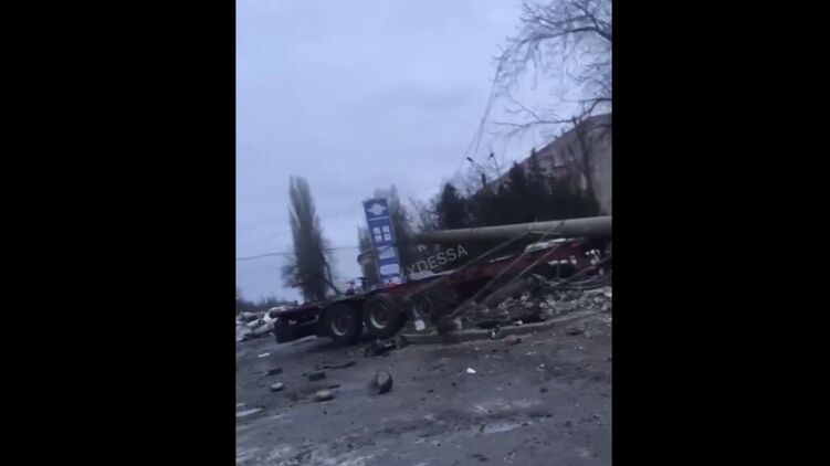 Судя по видео, фуру буквально разорвало на куски. Удар был такой силы, что машина снесла электроопору. Также на видео можно рассмотреть раздавленную грузовиком легковушку. Сообщается, что в аварии есть погибший.