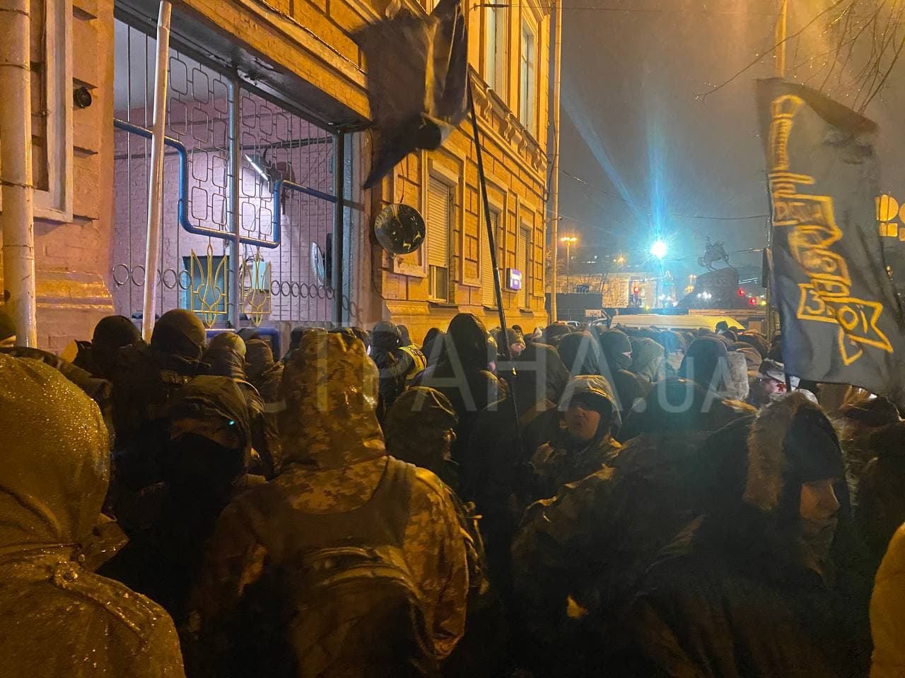 17:09 Под Печерским судом внезапно активизировалась группа поддержки Порошенко. Говорят, что готовы наступать. Отметим, что люди 6 часов митингуют под судом на морозе.