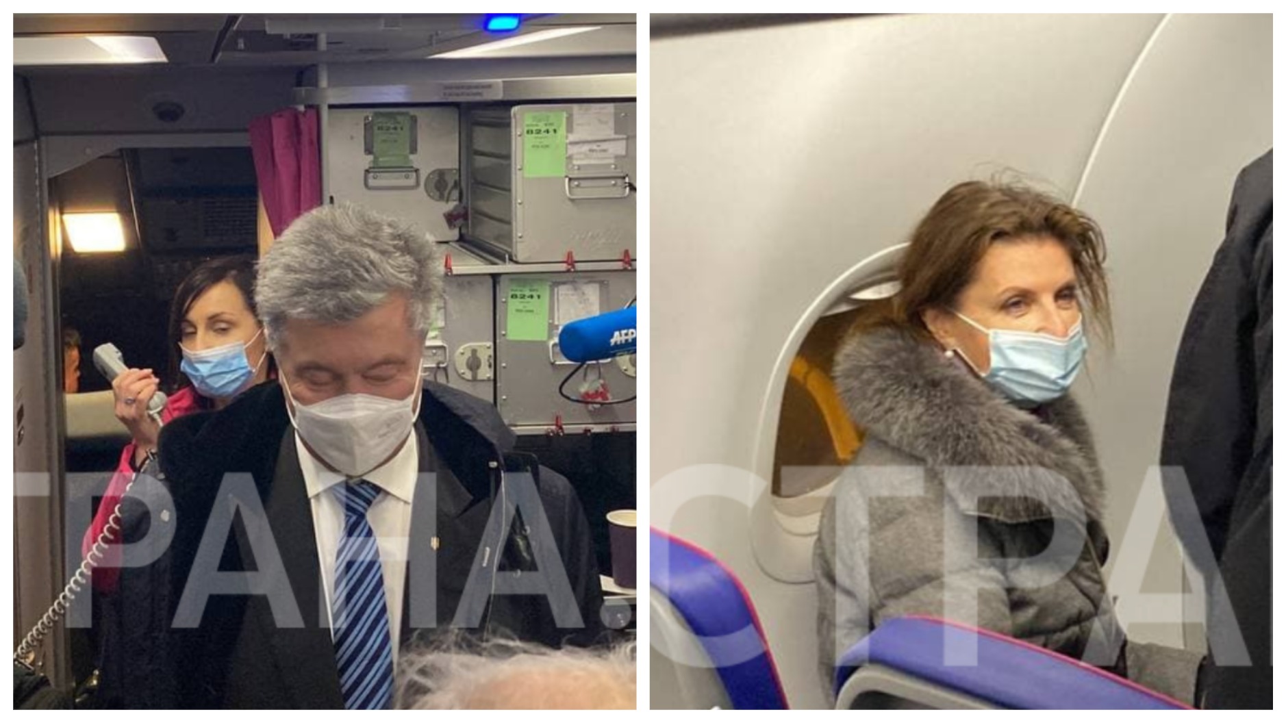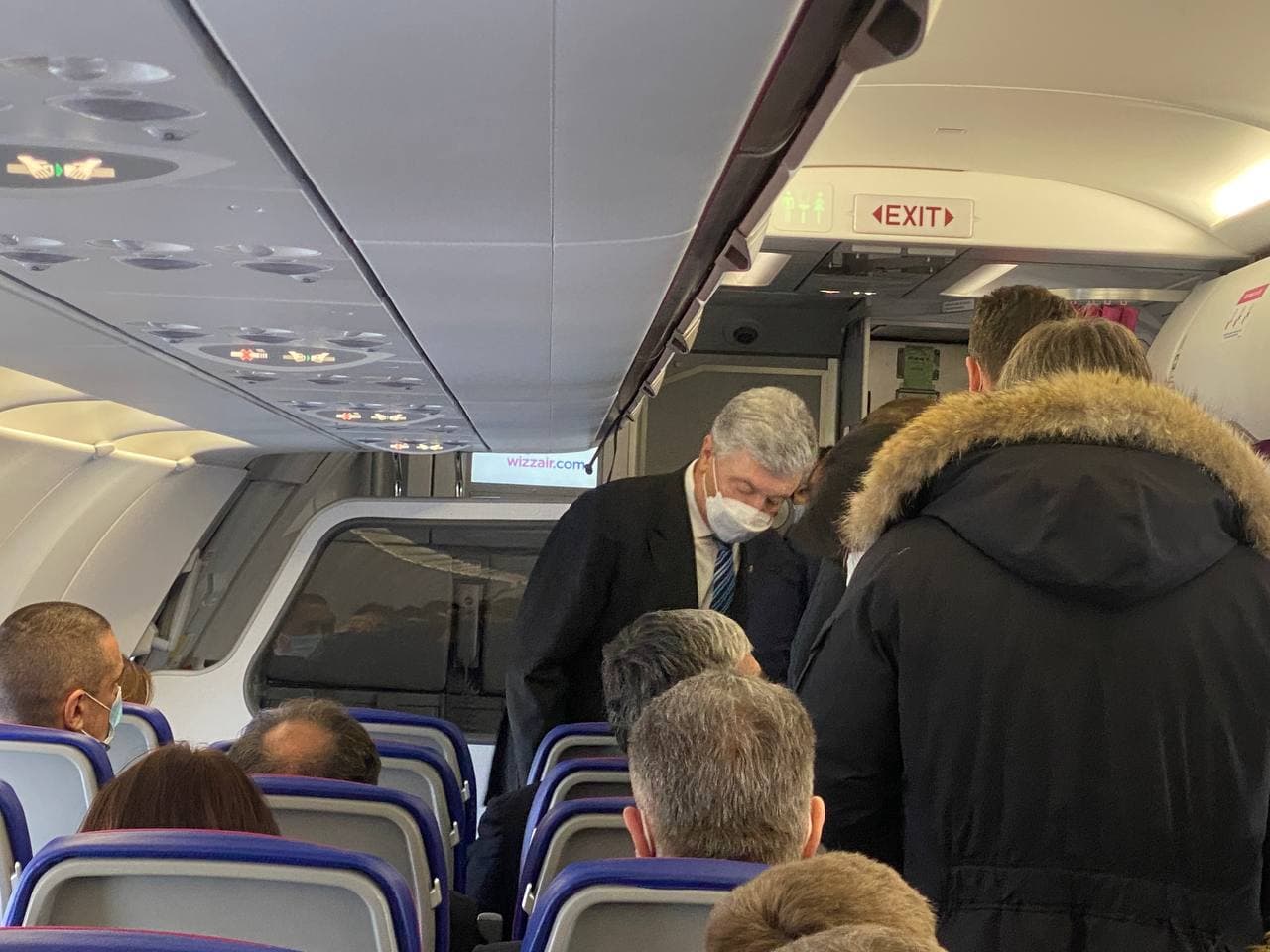 Депутаты "Европейской солидарности", которые также летят с Порошенко, стали в проходе таким образом, что к Порошенко нельзя подойти. Они пропустили только Мусаеву.