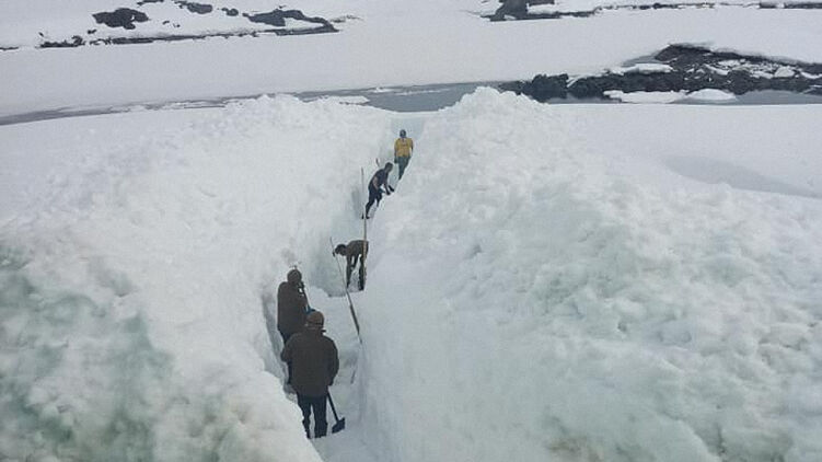 "Помните, мы рассказывали в декабре, что несмотря на начало антарктического лета под станицей "Академик Вернадский", частота метели и уровень снежного покрова стали рекордным за последние 20 лет? В частности, 24 и 25 декабря его рост был самым высоким - аж 3 метра! С Нового года снегопады почти прекратились, но теперь нашим полярникам нужно выкопать всю инфраструктуру станции", - говорится в сообщении.