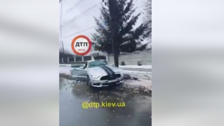 В Житомирской области Ford Mustang влетел в столб из-за гололеда на дороге. Видео