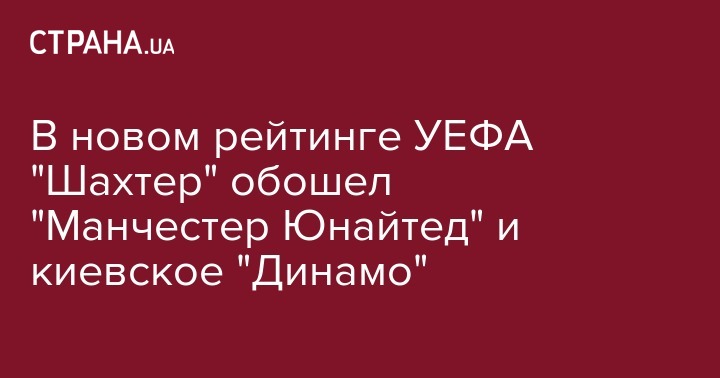 В новом рейтинге УЕФА "Шахтер" обошел "Манчестер Юнайтед" и киевское "Динамо"