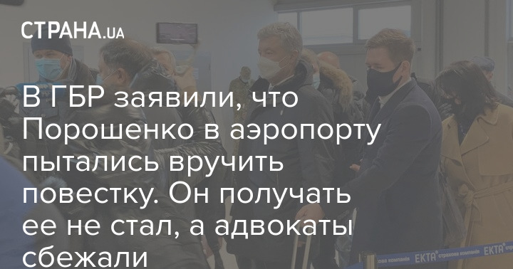 В Госбюро расследований пояснили, что во время прохождения Петром Порошенко паспортного контроля в аэропорту "Жуляны" утром 17 января  следователи ГБР пытались вручить экс-президенту повестку с вызовом в суд, однако он от получения документов отказался.