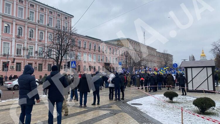 Прежде чем войти в здание суда бывший гарант выступил с речью перед собравшимися под Печерским судом.