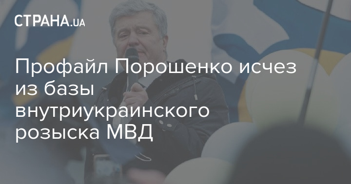 Профайл бывшего президента Украины, лидера "Европейской солидарности" Петра Порошенко исчез из сайта розыска Министерства внутренних дел Украины (МВД).