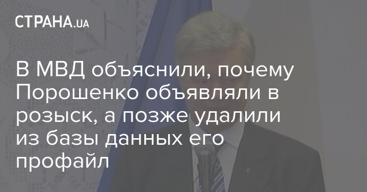 На портале Министерства внутренних дел Украины объяснили процесс появления и удаления профайла Петра Порошенко из базы данных розыска.