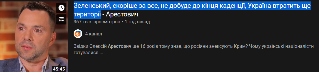 Из той же оперы - предложение переименовать Украину в "Русь-Украину". Идею также озвучивал Арестович. То есть он вел на Банковой тему "борьбы за русское наследство".