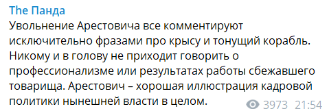 "Алексей Арестович уволился с должности первого советника главы Офиса президента. Прогнозирую, что ряды критиков власти пополнились содержательным спикером".